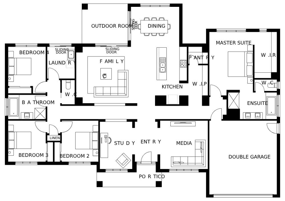 Perfectly designed for wider blocks of land, the David home designs provide generous living for growing and established families alike. Featuring a generous master suite complete with ensuite, separate toilet and large walk-in robe, your private retreat is well placed with secondary bedrooms at the opposite end of the home. The central living space separate the sleeping quarters, defined by a large open plan living space lined with windows to bring the outside in. Additional living zones, including a study, media room and leisure, allow for privacy and specialised entertaining or relaxing.